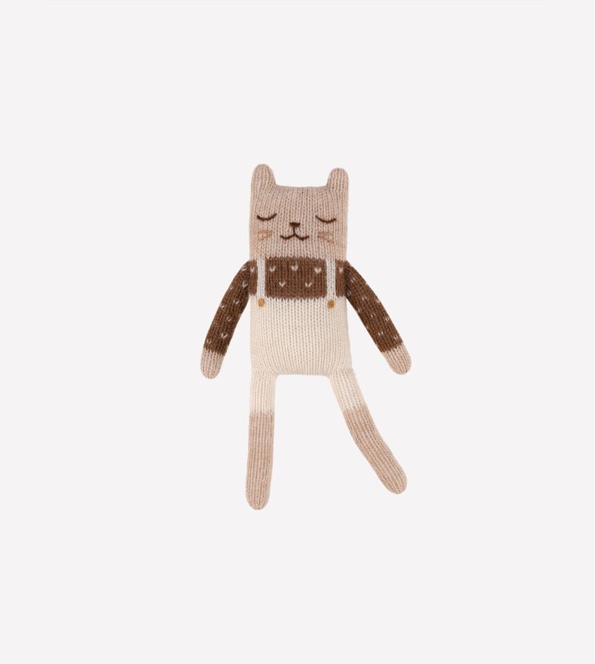 main sauvage / Kitten knit toy - Ecru overalls
